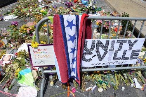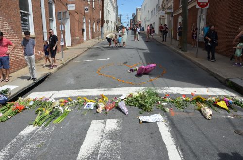 I am not sure what I did for the rest of the day. On Sunday morning, I went to church services and afterwards went down to 4th and Water Street to pay my respects to the memory of Heather Heyer and to those who had been injured.