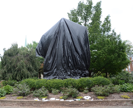 On August 23, city officials in Charlottesville also covered the Lee and Jackson monuments – the sculptures whose potential removal provoked the neo-Nazis into a frenzy of hate – with a black tarp.